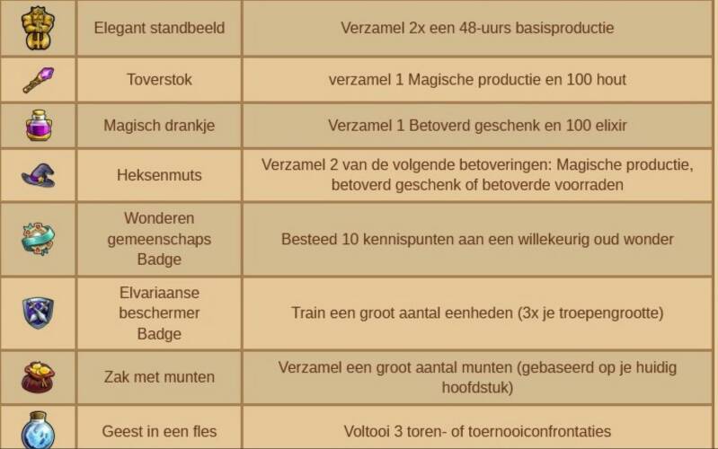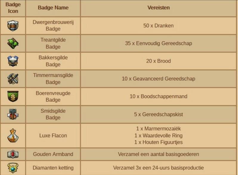 - Er zijn 10 verschillende herhaalbare quests, elke quest geeft je een van de 10 verschillende items die te krijgen zijn. Sommige quest vereisen producties in de werkplaats andere vereisen de productie van basisgoederen in de fabrieken.
