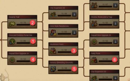 Andere tip is pak eerst het onderzoek aan van de wapenkamer aan en ga die eerst uppen, het voordeel na de up is dat ze dan orks gaan produceren.