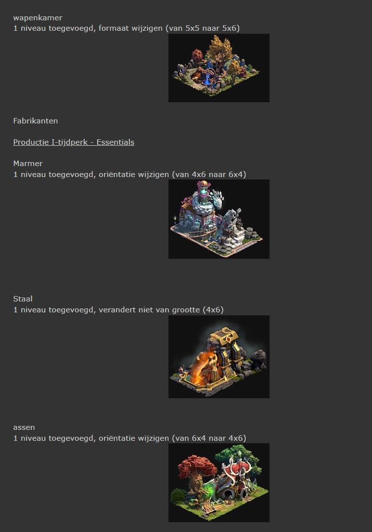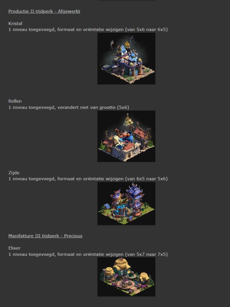 In dit nieuwe hoofdstuk zullen we een nederzetting vinden die bestaat uit 3 soorten gebouwen: het portaal, de makers en de complexen.