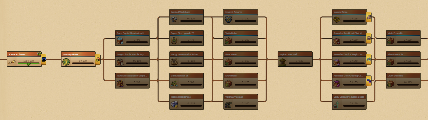 De eisen voor verbetering zijn Melodie, Begeleiding en Ritme, die worden verkregen uit specifieke gebouwen die direct op het portaal en/of op elkaar worden aangesloten, respectievelijk het Complex van Violen, Fluiten en Drums.