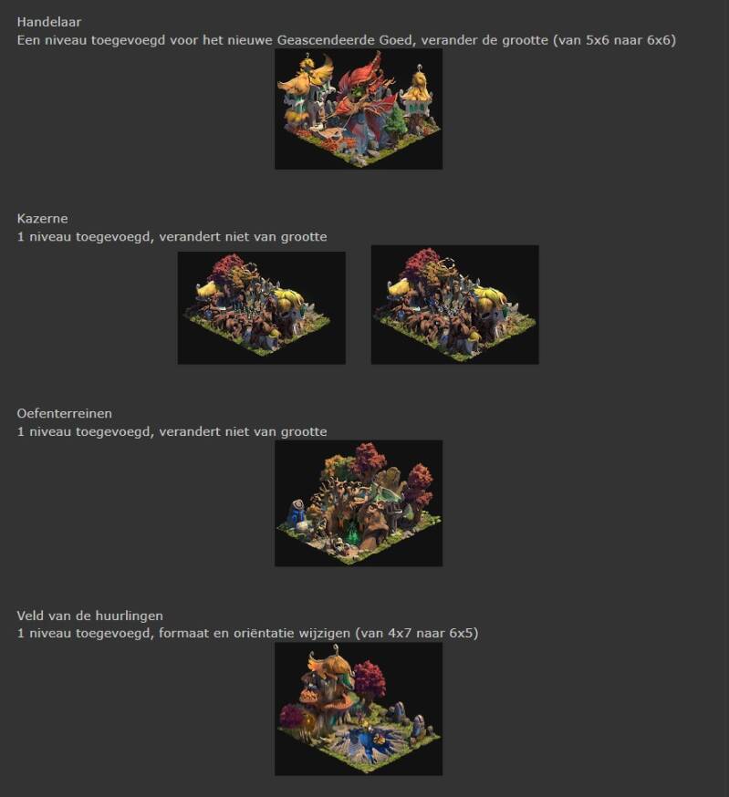 De nederzetting Met de komst van het nieuwe hoofdstuk komt het volgende niveau van geascendeerde goederen, waardoor je handelaar niet 6, maar in totaal 9 goederen kan ruilen (na het upgraden van je handelaar naar niveau 9).