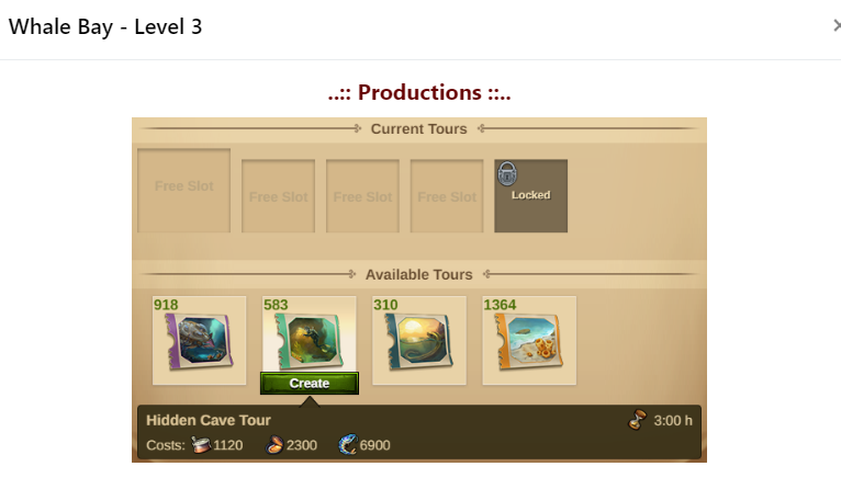- productiegebouw van deze nederzetting. Moet worden verbonden met Whale Bay via Voorlopig pad. Produceert zeevruchten en biedt, net als elk ander productiegebouw van dit hoofdstuk, een optie om Luminious Shrimps te produceren (de enige gemaximeerde bron van dit hoofdstuk, die ook kan worden verkregen via Portal Profit instants). Vereist Mana om zeevruchten te produceren.