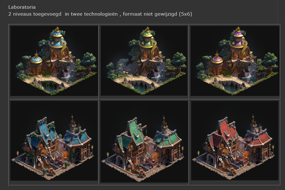 Eenhoornpark (3x8): Produceert elke 3 uur Dryaden en verhoogt de onttoveringsbonus van de Magische Academie.
