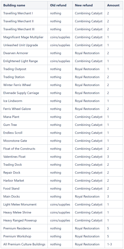 We introduceren nuttige restituties voor sommige gebouwen. Ze verlenen nu combinatieversnellers of koninklijke restauratie, afhankelijk van hun grootte en type (meestal tussen 1 en 3)