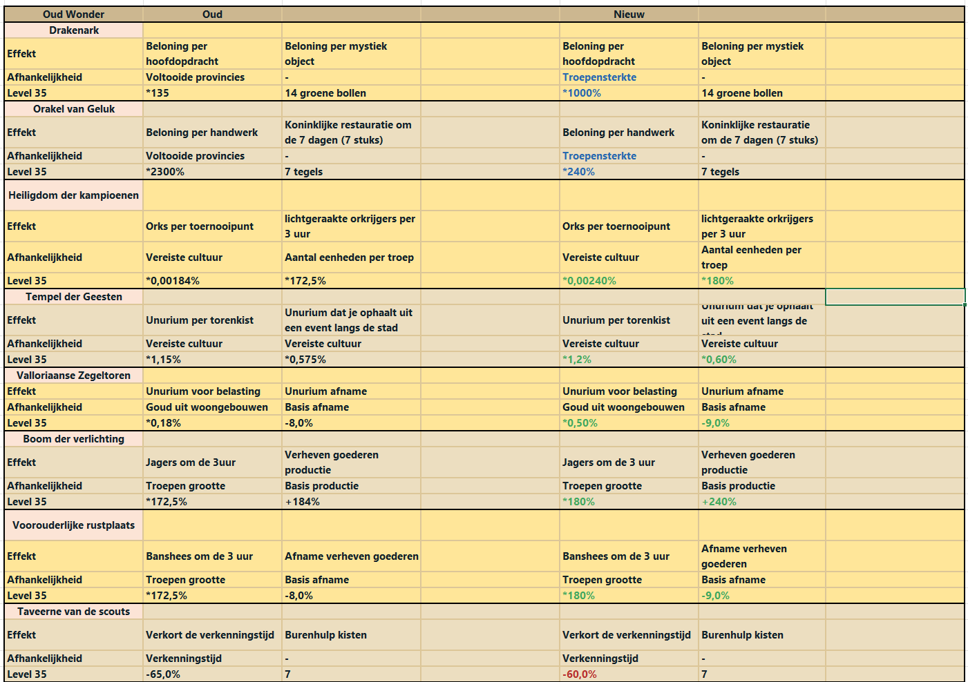 Hallo! Na de veranderingen aan de Oude Wonderen die we vorige week hebben doorgevoerd, willen we nu enkele daarvan wat meer uitlichten. Aanvankelijk lag de focus op een paar grote aanpassingen in negatieve zin (zoals de cultuur), we wilden volledig transparant zijn met jullie en uitleggen waarom deze plaatsvonden. We weten dat ze voor sommigen van jullie een gevoelig punt waren.