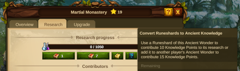 De mogelijkheid om een Ruinen scherven te gebruiken om ze te kunnen transformeren in kennispunten die kunnen worden gebruik in een Oud Wonder.