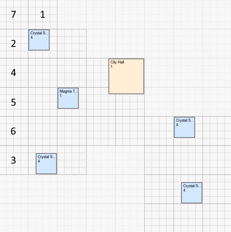 Ga door met het upgraden van je Wereldwonder naar level 13. Plaats daarna de nieuw verworven uitbreidingen als volgt: