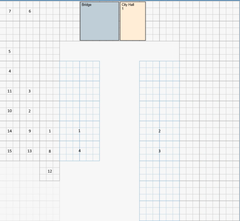 Wanneer je het Wereldwonder naar level 17 upgradet, plaats je de nieuwe uitbreidingen als volgt: