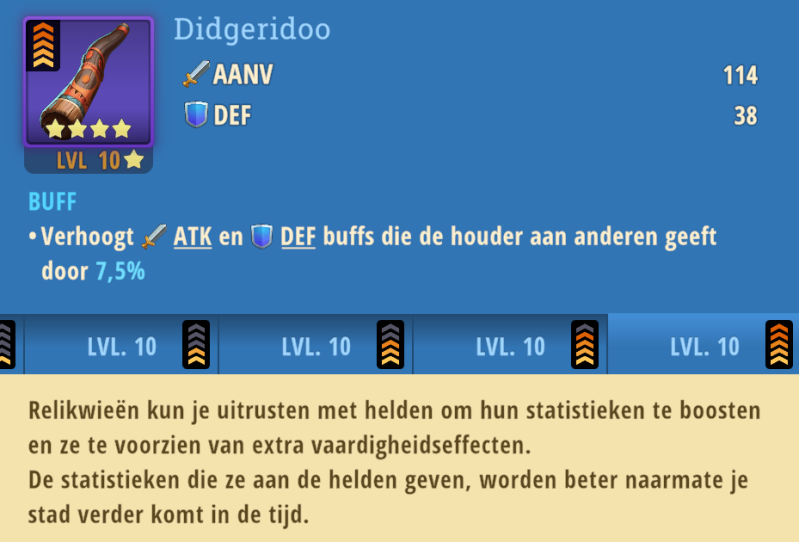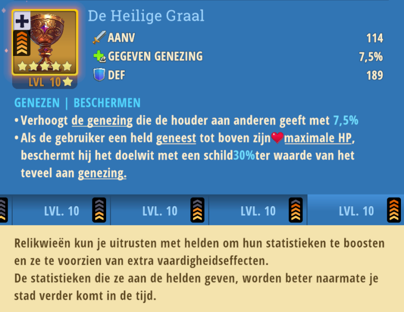 Door het verzamelen van relikwieën kan je de helden verder uppen in sterke en vaardigheden.