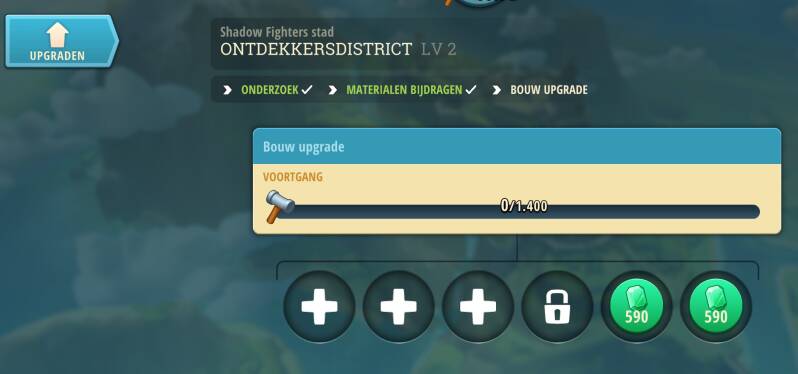 Hier zie je de balk van een onderzoek en hier kunnen nu 3 spelers starten met het onderzoek te upgrade, naarmate je meer levels vrij speelt kunnen er ook steeds meer spelers aan dat dezelfde onderzoek mee doen, elk onderzoek geeft je goederen aan het eind goederen voor je stad of goederen om je alliantie stad nog sneller te kunnen upgraden in de onderzoeken.